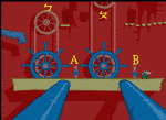 沿先前走過的路再一次經過吊橋回到轉輪處,將閘門A開啟、閘門B放下,水流就會改變方向,然後同樣再利用轉輪ㄅ,搭乘索橋回到水道斷裂處,進入水道將最初關上的閘門打開就過關了。